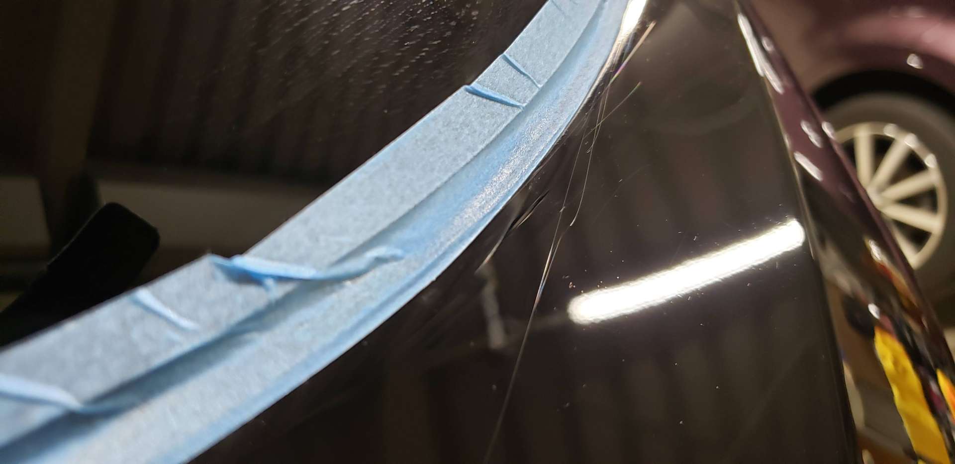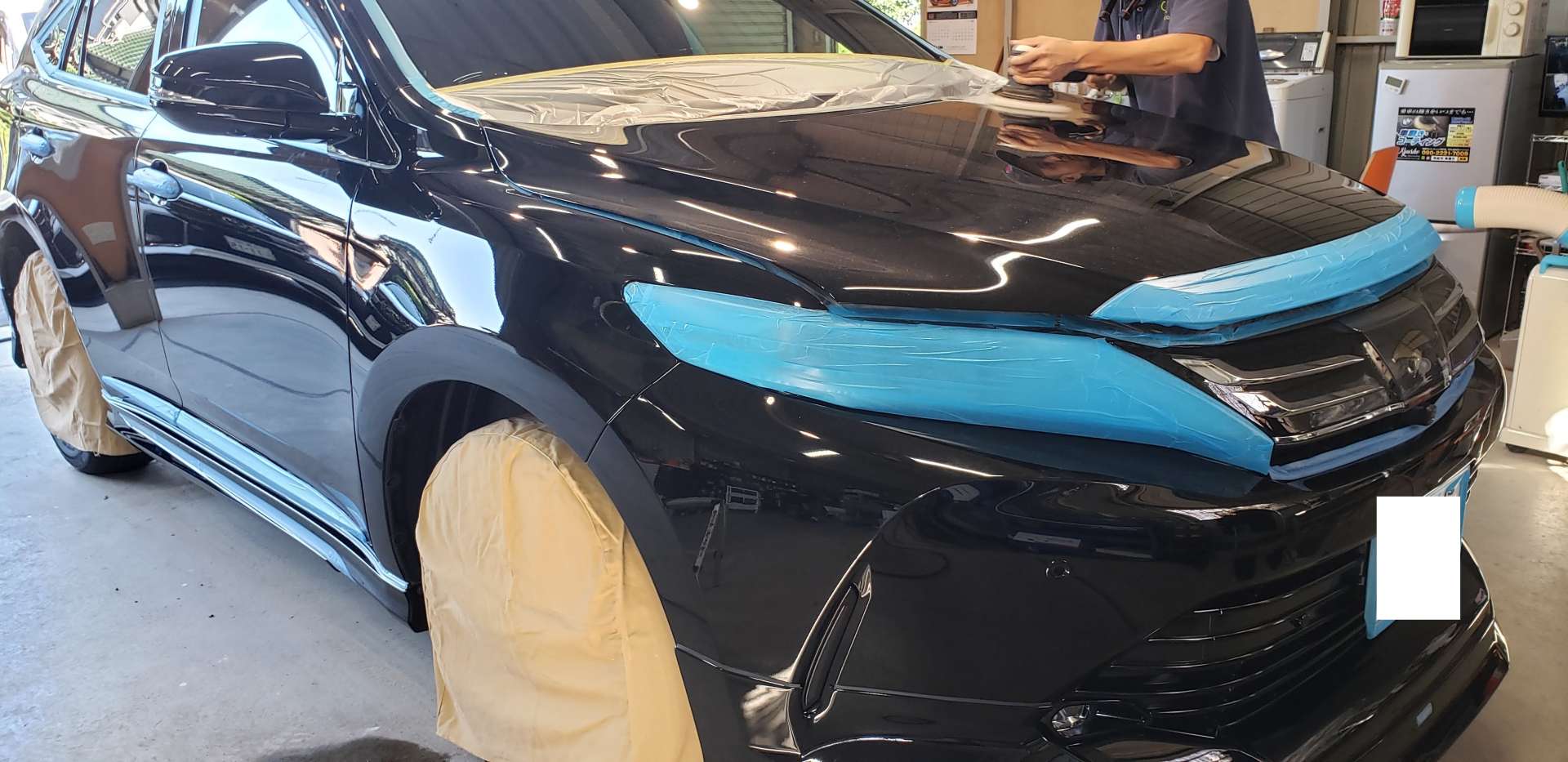 マスキング後は研磨で汚れと共にキズも除去しています。