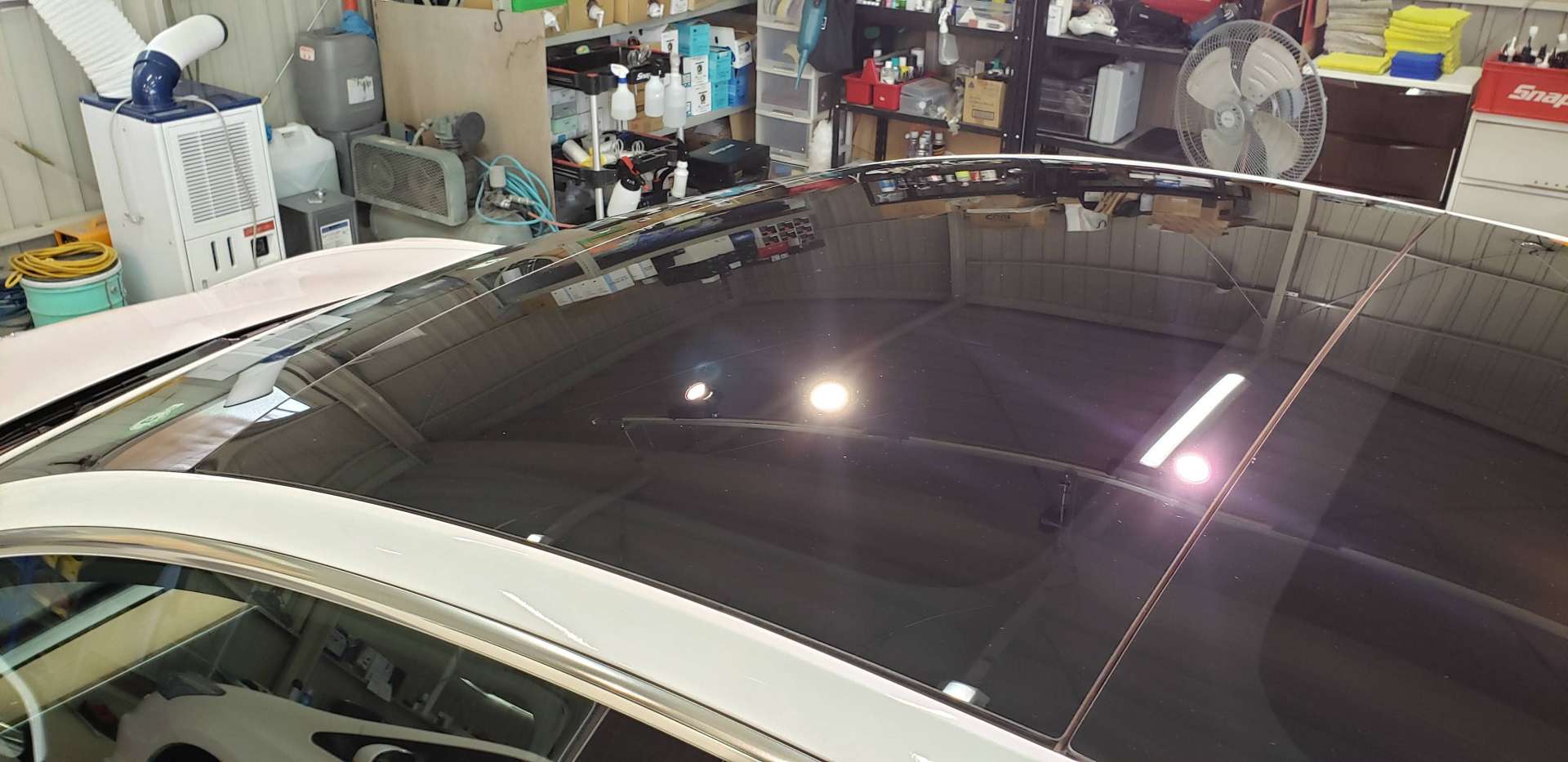 施工する事でガラス特有の鋭い艶が得られます。