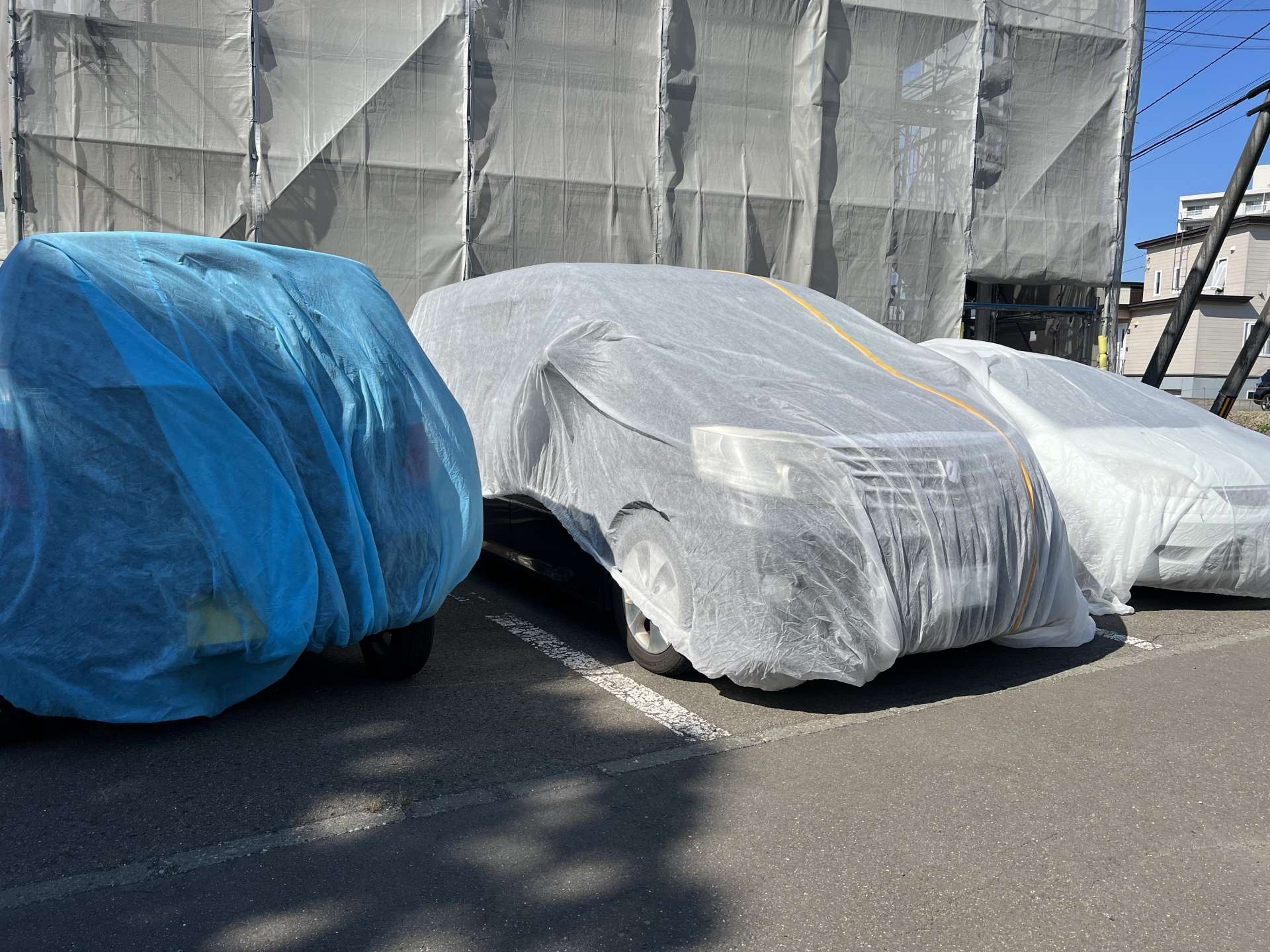工事現場などから塗料が飛散し車の塗装面やガラス面に