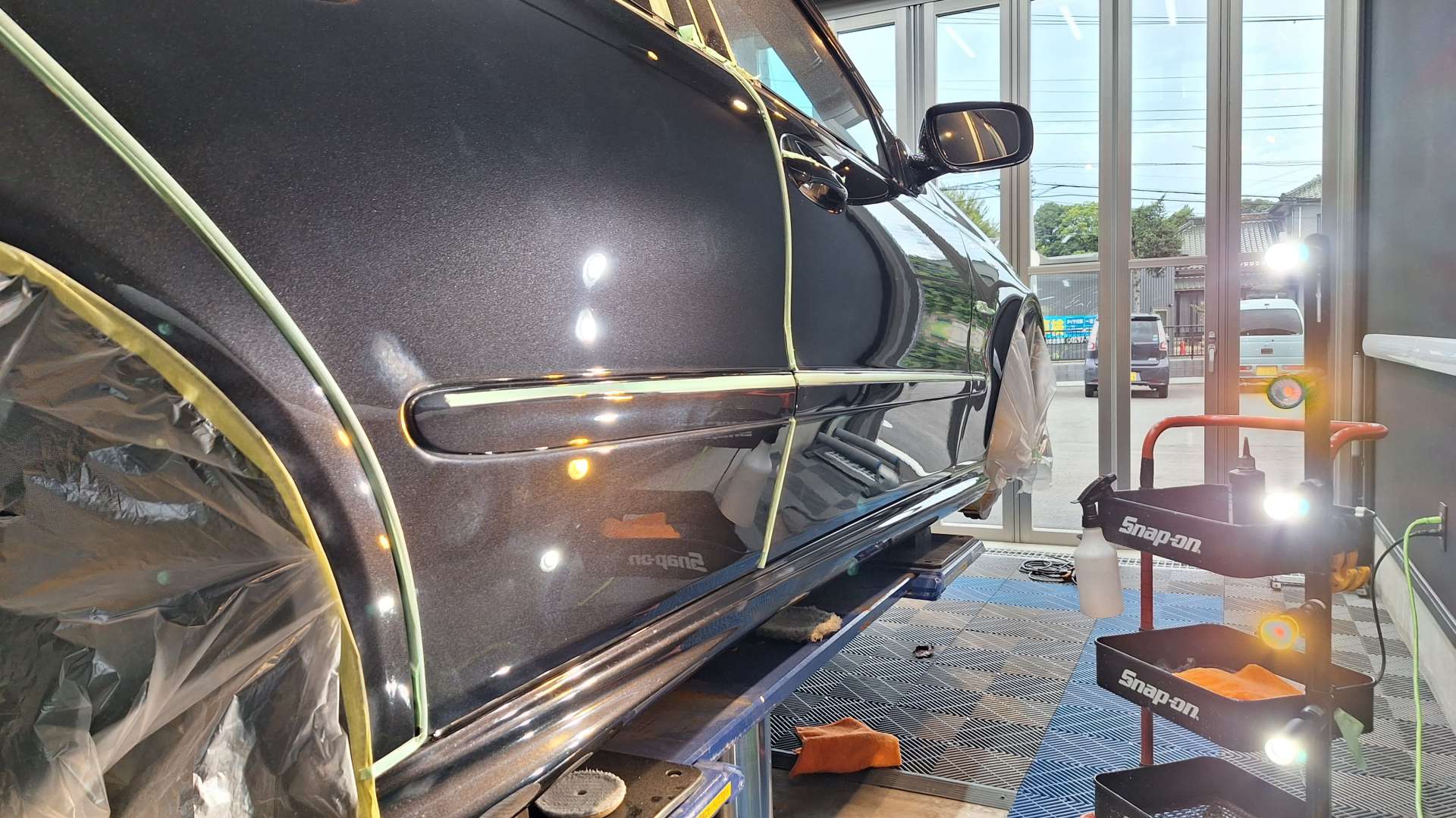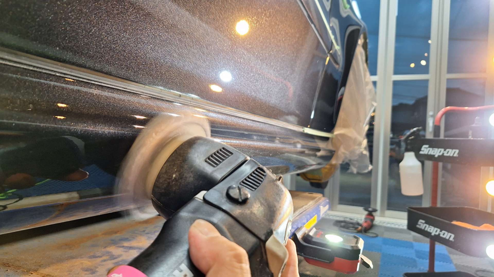 研磨力の高いシングルポリッシャーやダブルアクションなどもてる技術全てを駆使して施工します!