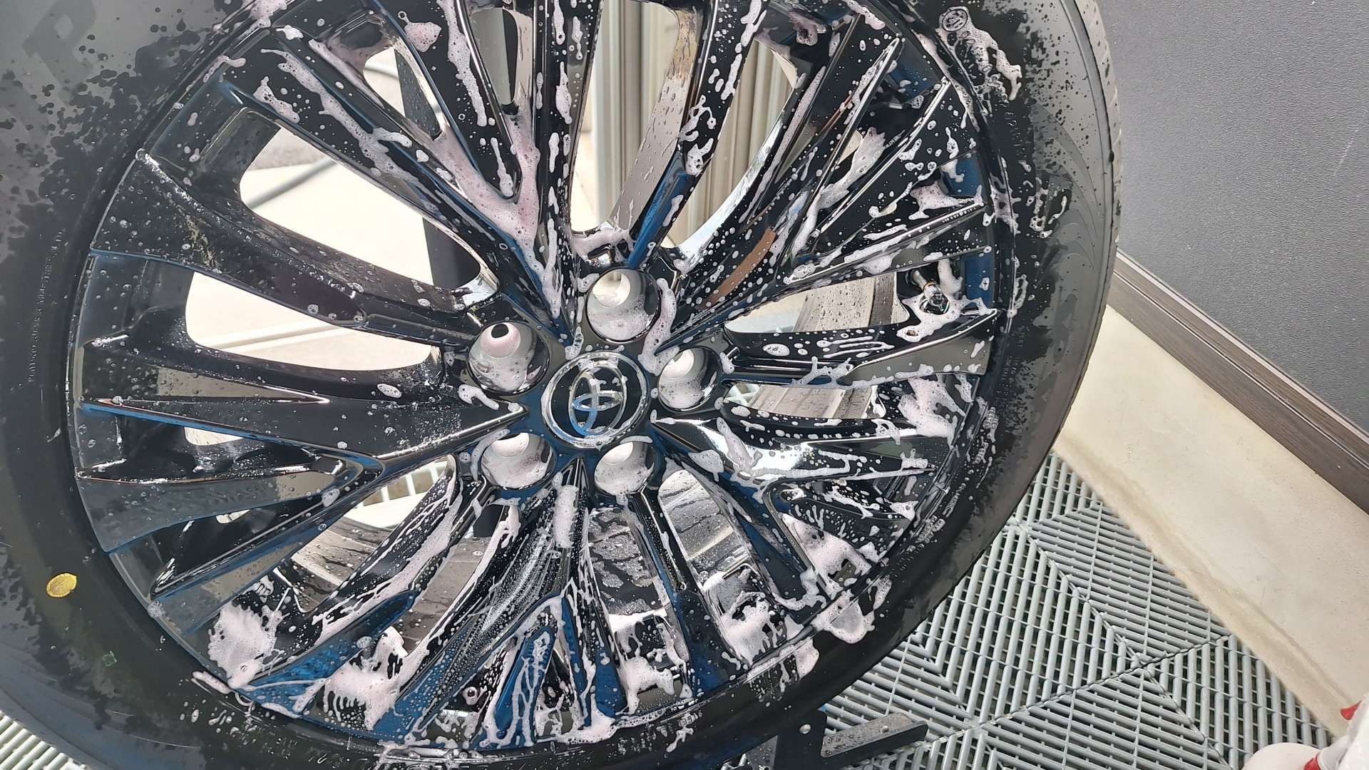 車によってナットの締め付けトルクは異なるため適切なトルクで締めます。