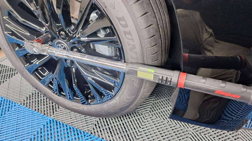 タイヤの脱着作業は必ずトルクレンチでナットを締めます。