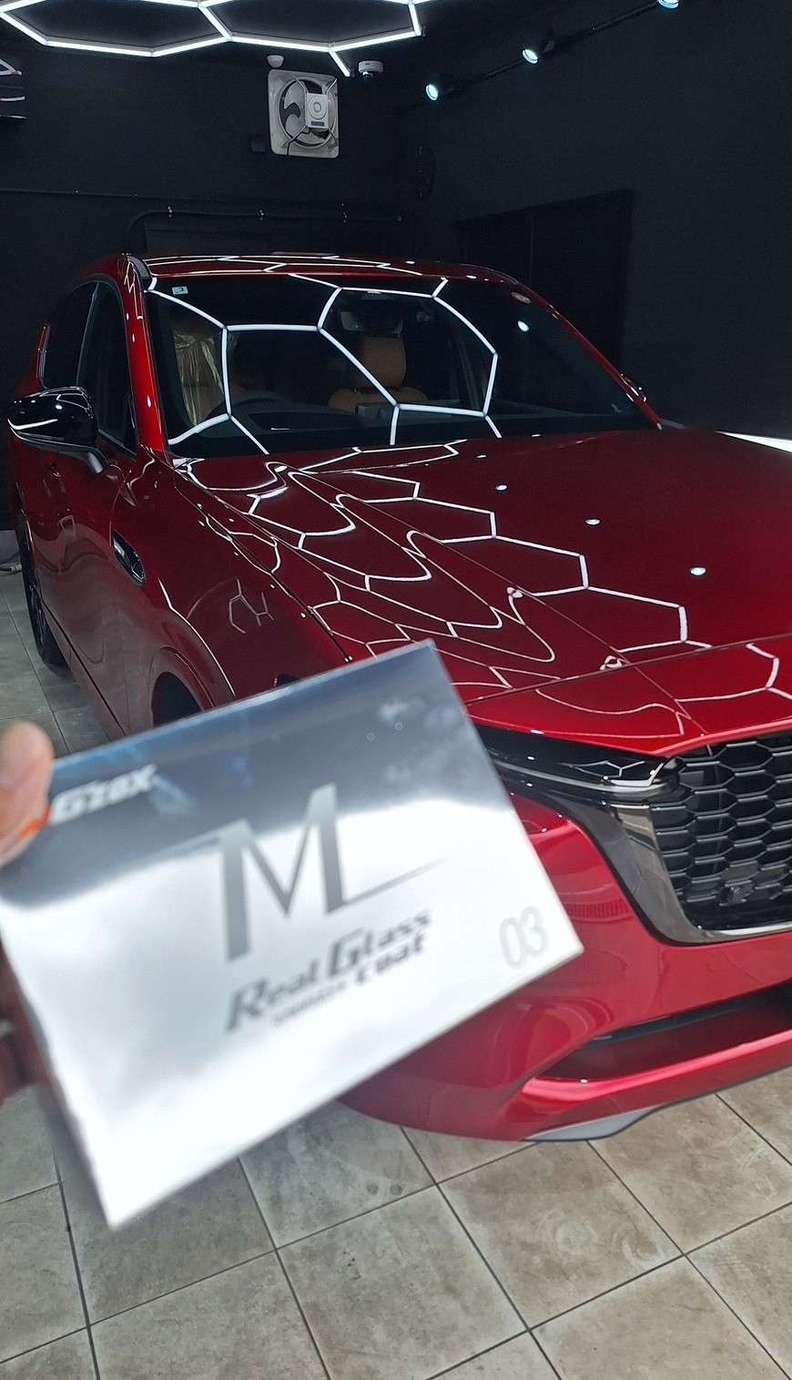 コーティング施工後はソウルレッドクリスタルメタリック特有の透明感と深みがより際立ち、