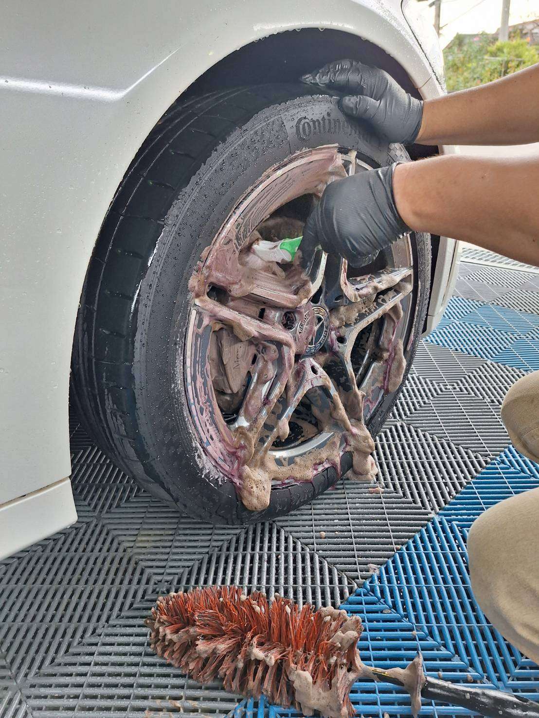 ボディだけでなくタイヤも丁寧に洗浄し、足元まで引き締まった印象に仕上げました。