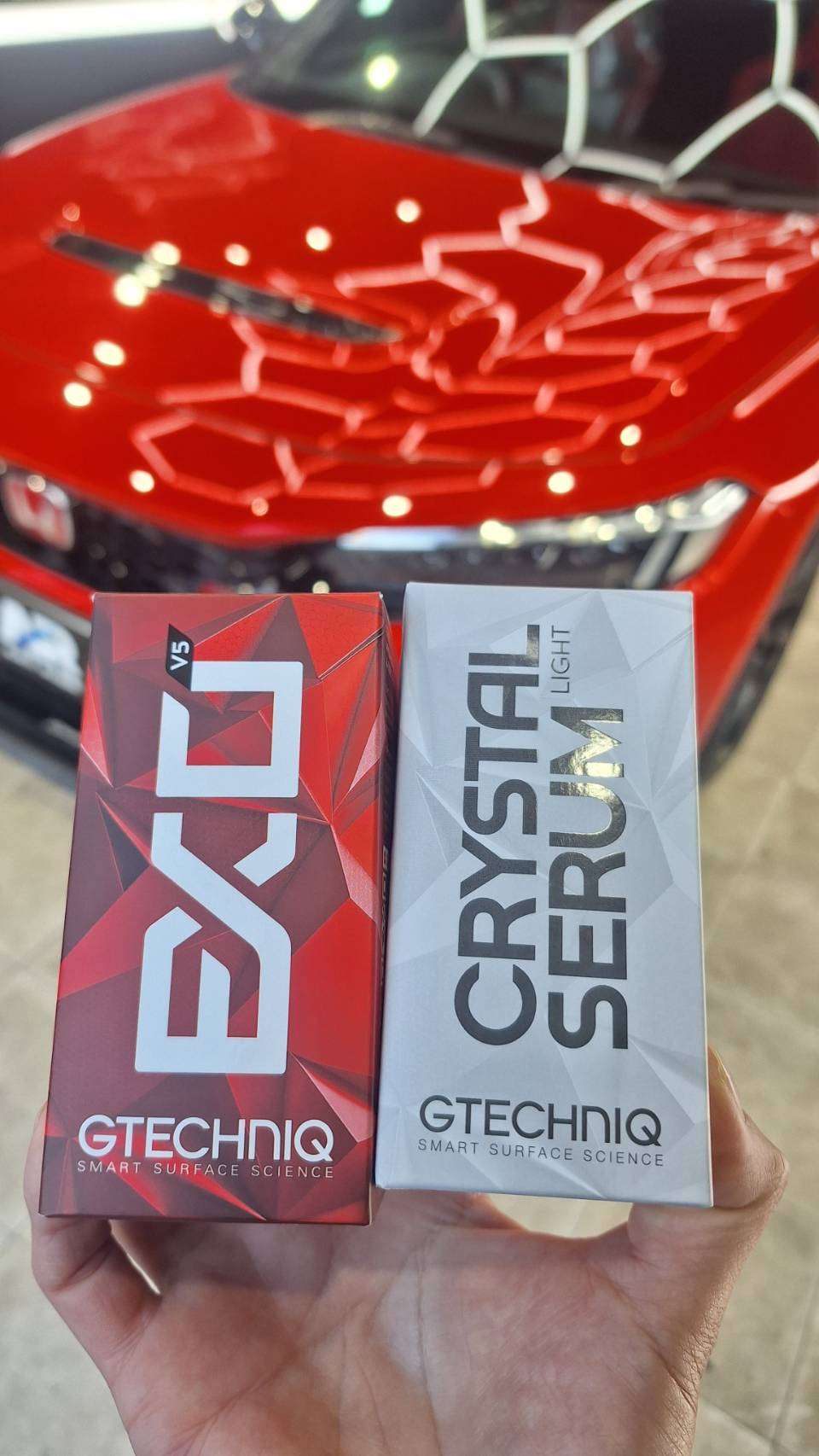 下地を整えた後、コーティングを施工することで、赤本来の深みと艶が一段と引き立ち、光の当たり方によって表情が変わる美しい仕上がりとなりました。